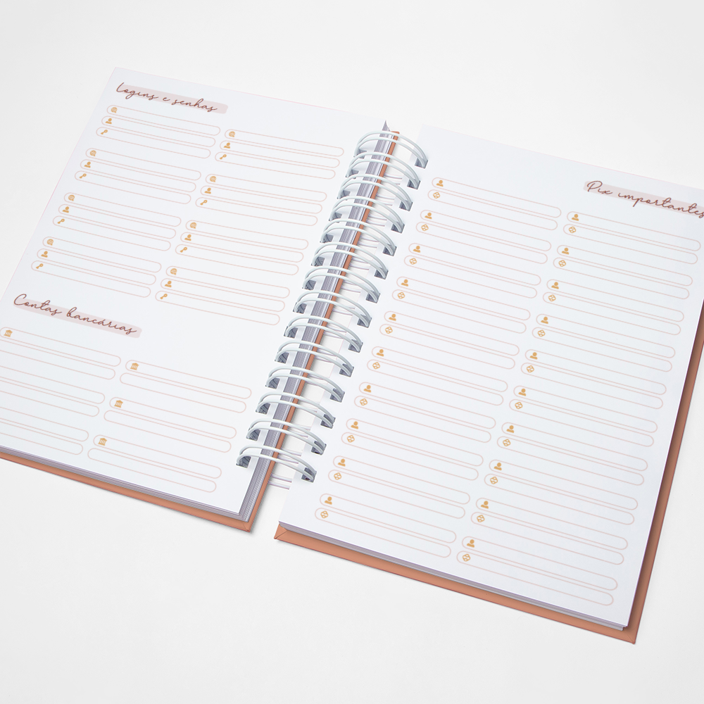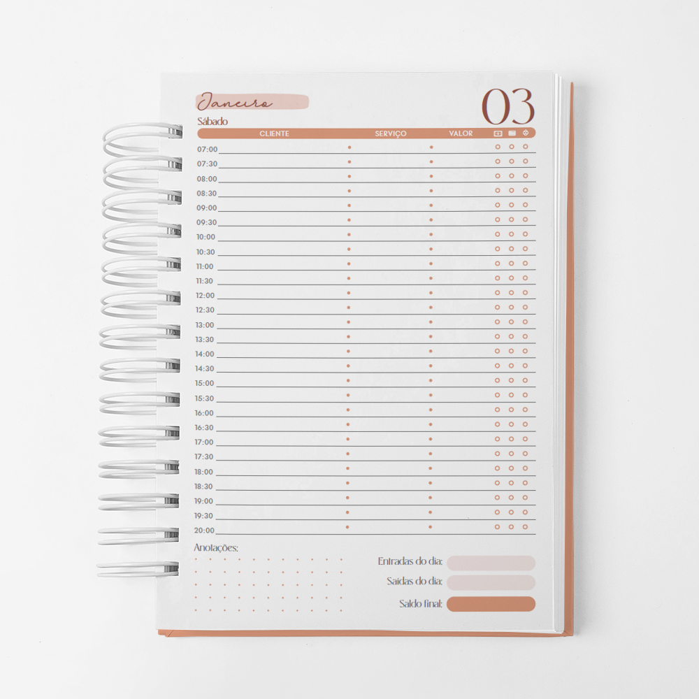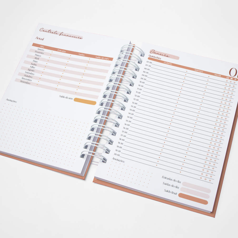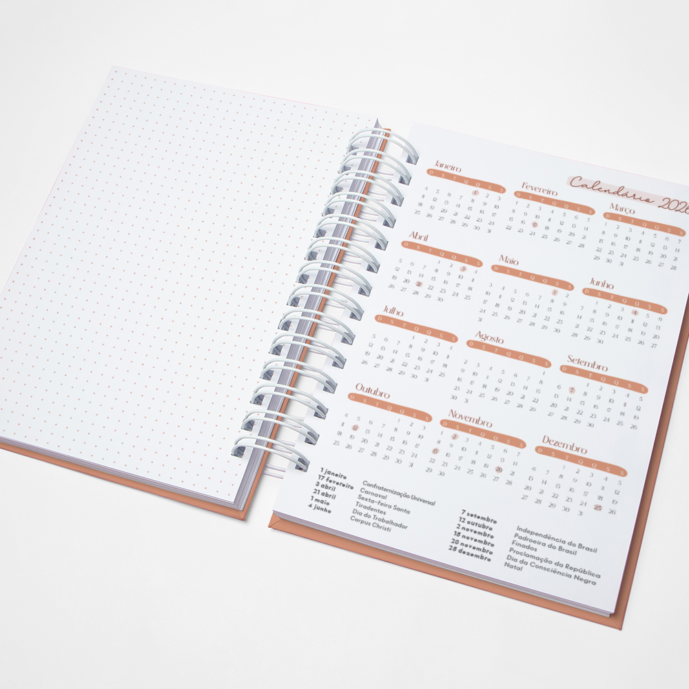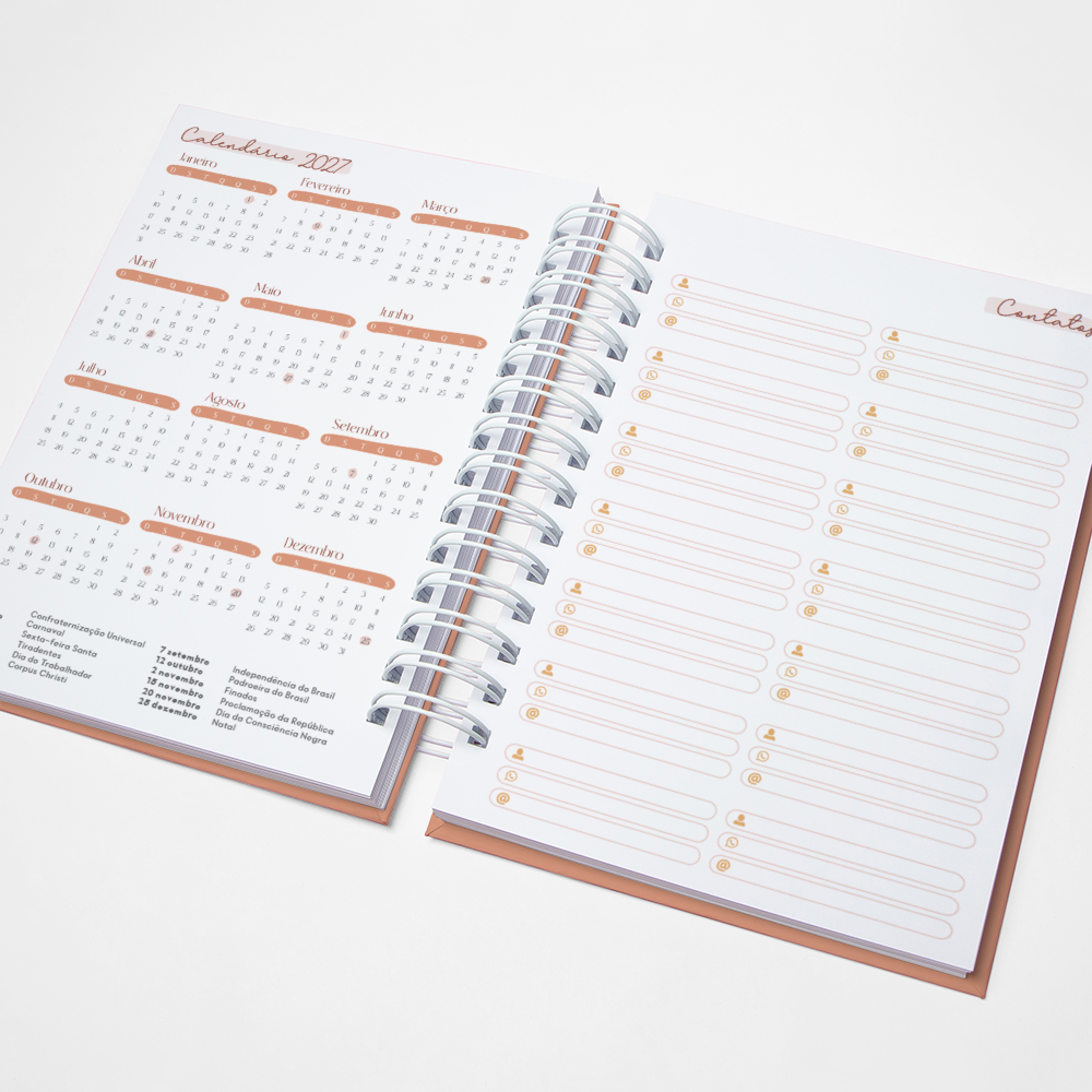 Para que sua Agenda fique ainda mais Perfeita, você pode escolher a Capa que preferir para colocarmos nela. Temos uma variedade incrível de opções (acesse no menu Opções de Capas) e escolha a que mais te encantar.
