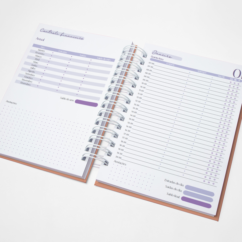 Para que sua Agenda fique ainda mais Perfeita, você pode escolher a Capa que preferir para colocarmos nela. Temos uma variedade incrível de opções (acesse no menu Opções de Capas) e escolha a que mais te encantar.