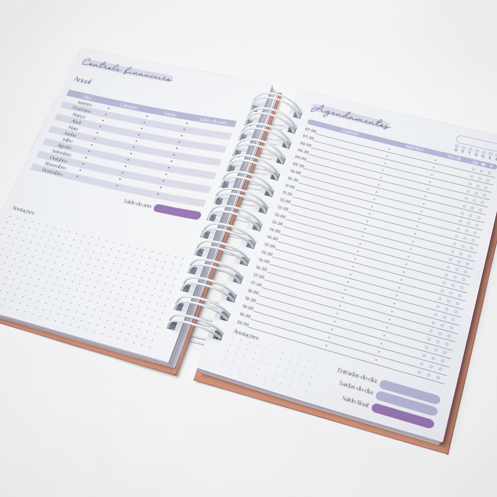 Para que sua Agenda fique ainda mais Perfeita, você pode escolher a Capa que preferir para colocarmos nela. Temos uma variedade incrível de opções (acesse no menu Opções de Capas) e escolha a que mais te encantar.