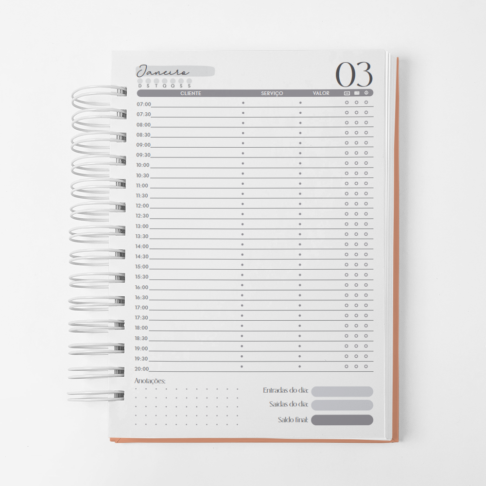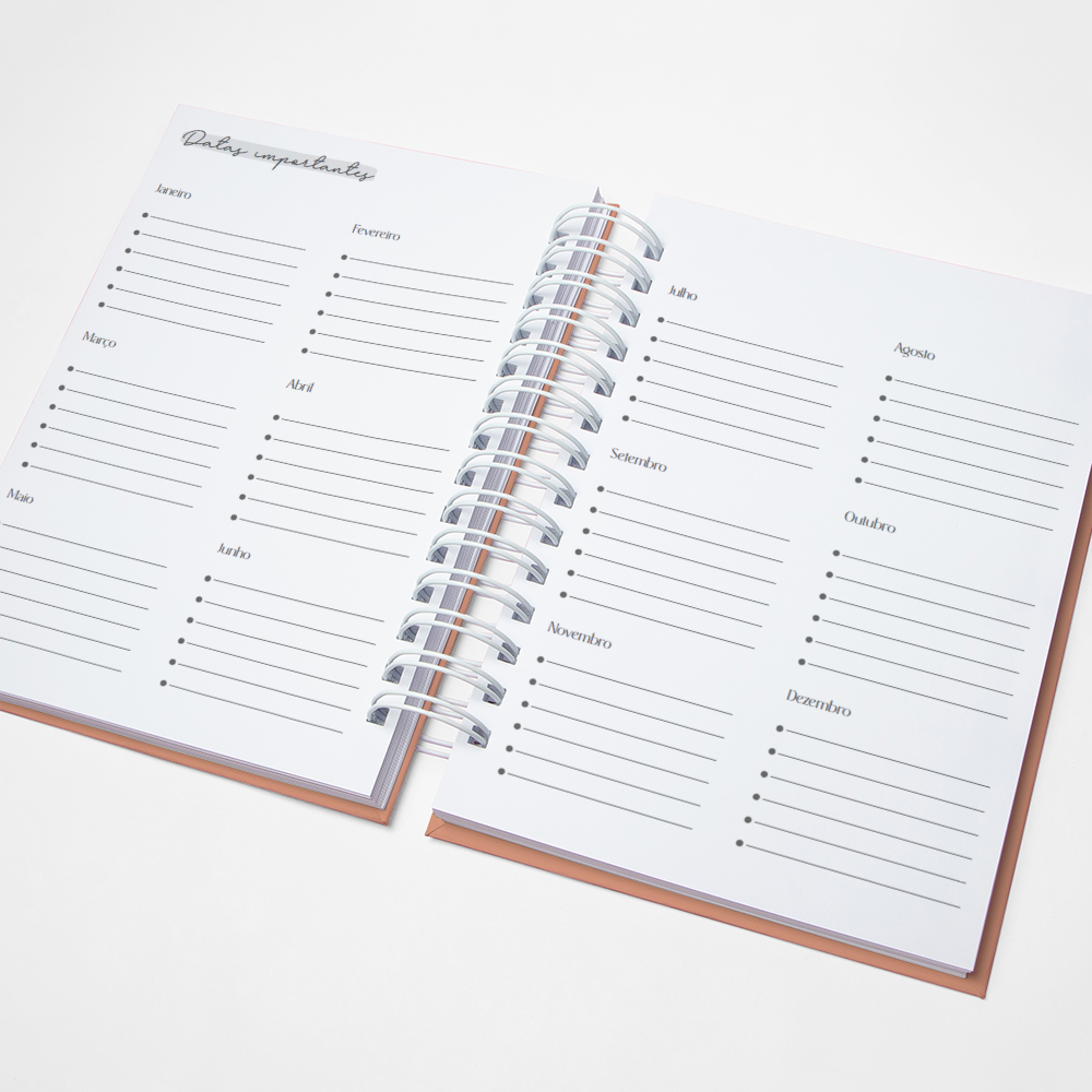 Para que sua Agenda fique ainda mais Perfeita, você pode escolher a Capa que preferir para colocarmos nela. Temos uma variedade incrível de opções (acesse no menu Opções de Capas) e escolha a que mais te encantar.