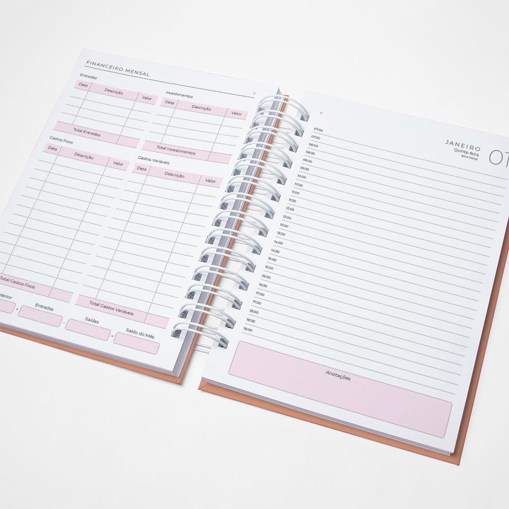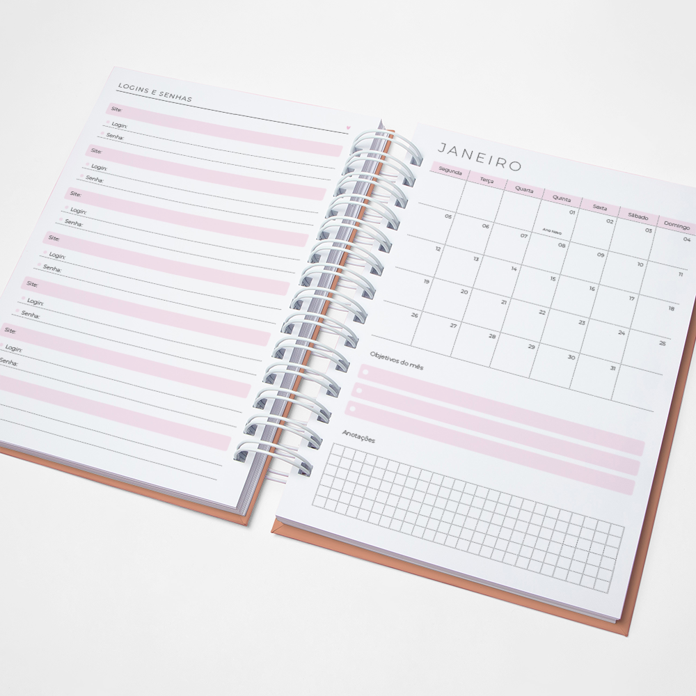 Para que sua Agenda fique ainda mais Perfeita, você pode escolher a Capa que preferir para colocarmos nela. Temos uma variedade incrível de opções (acesse no menu Opções de Capas) e escolha a que mais te encantar.