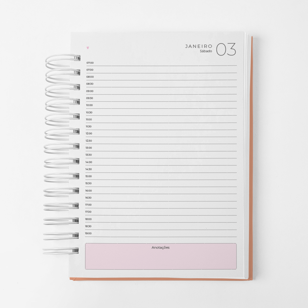 Agenda Branco Papel 2026 – Datado – 1 dia por página Rosa