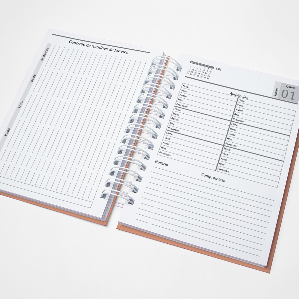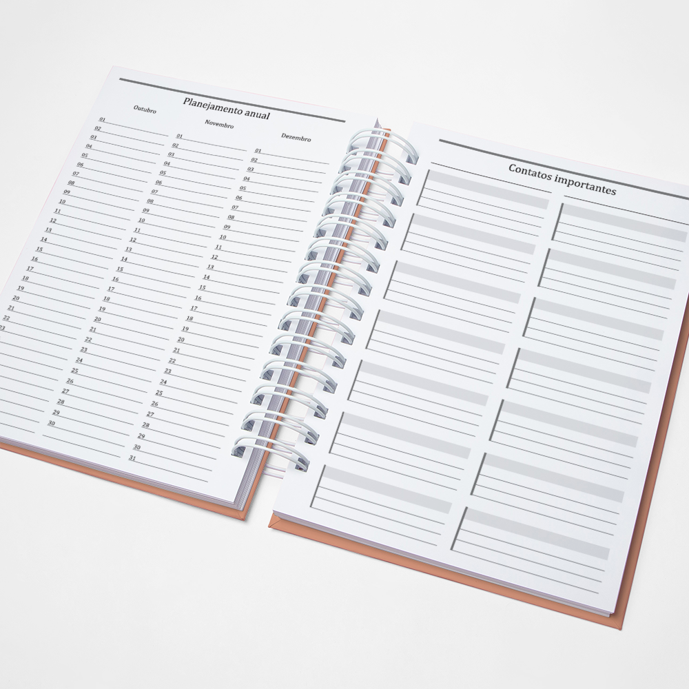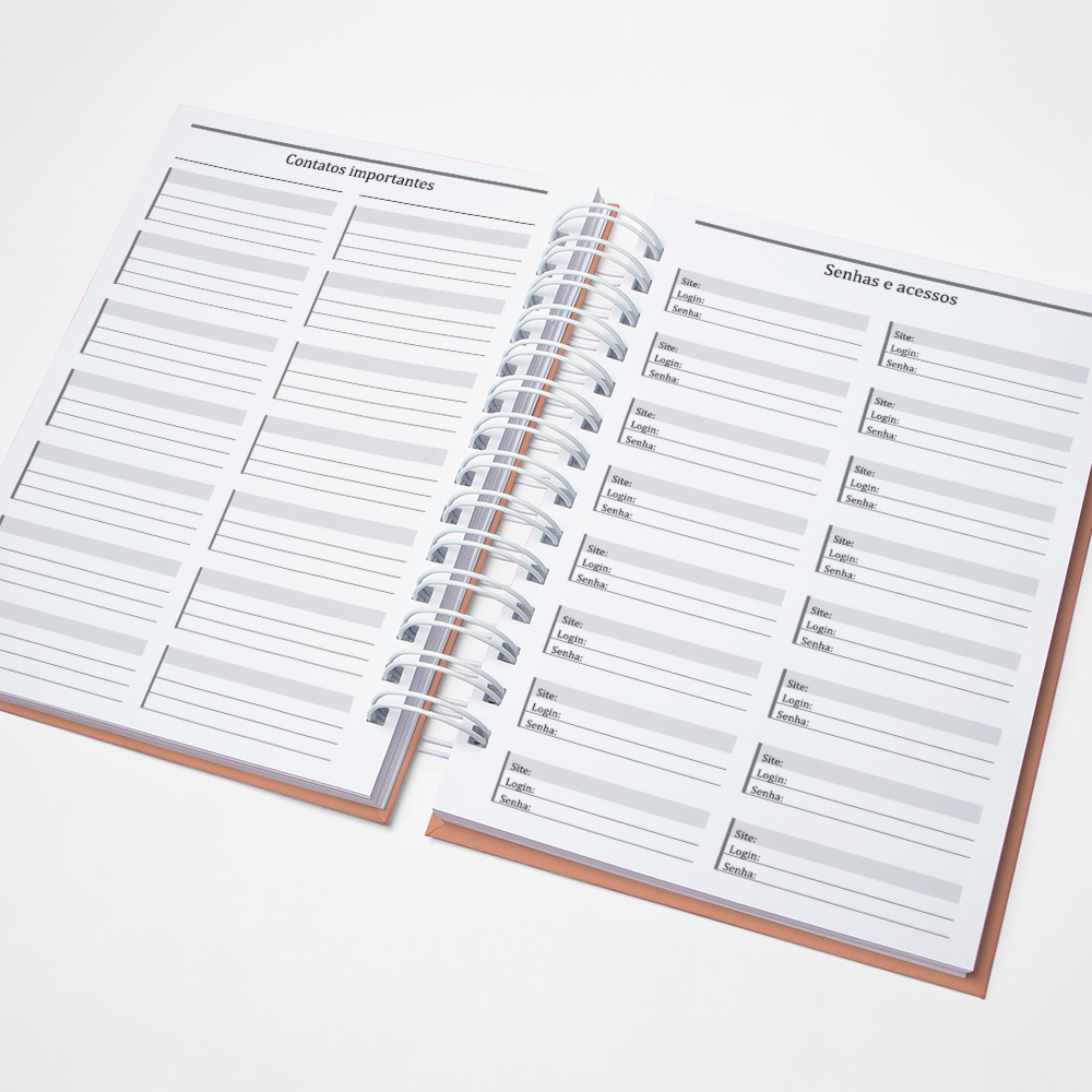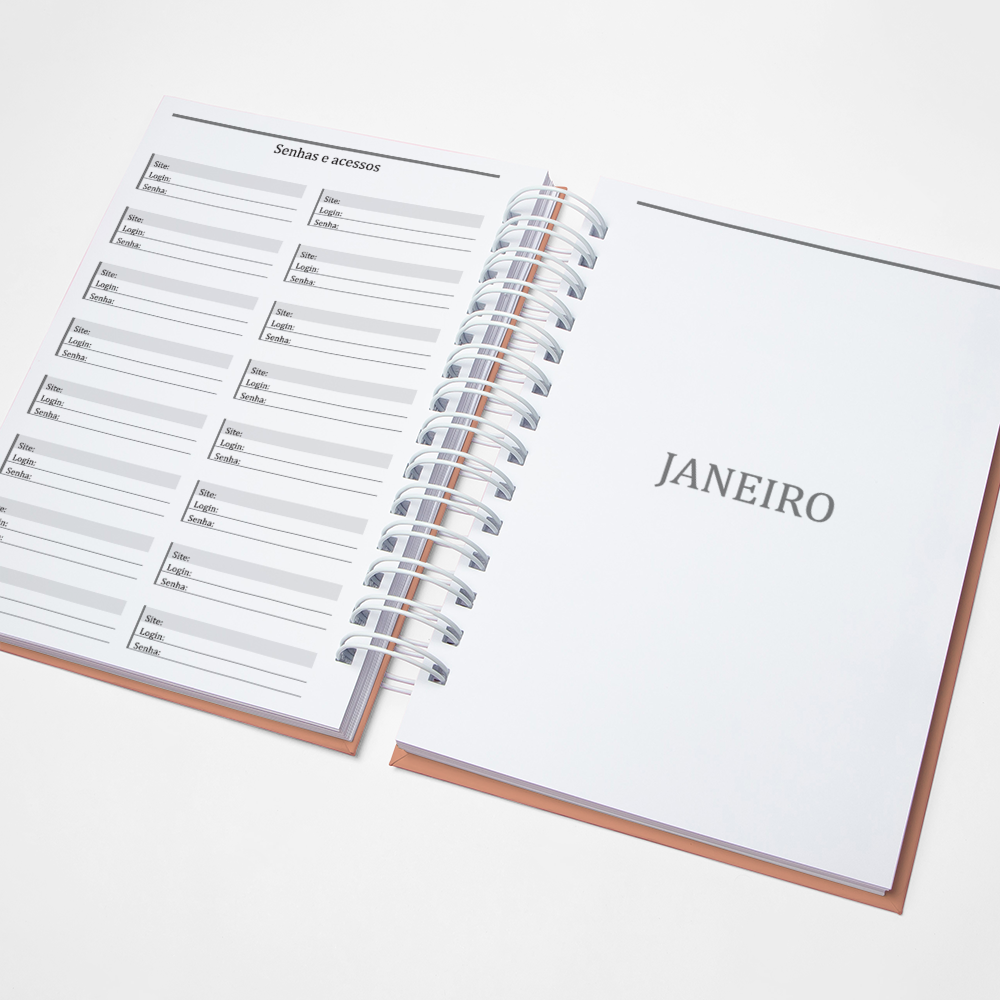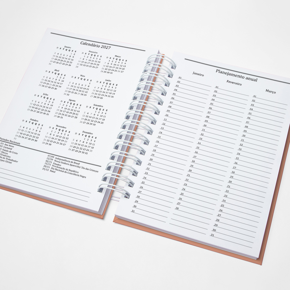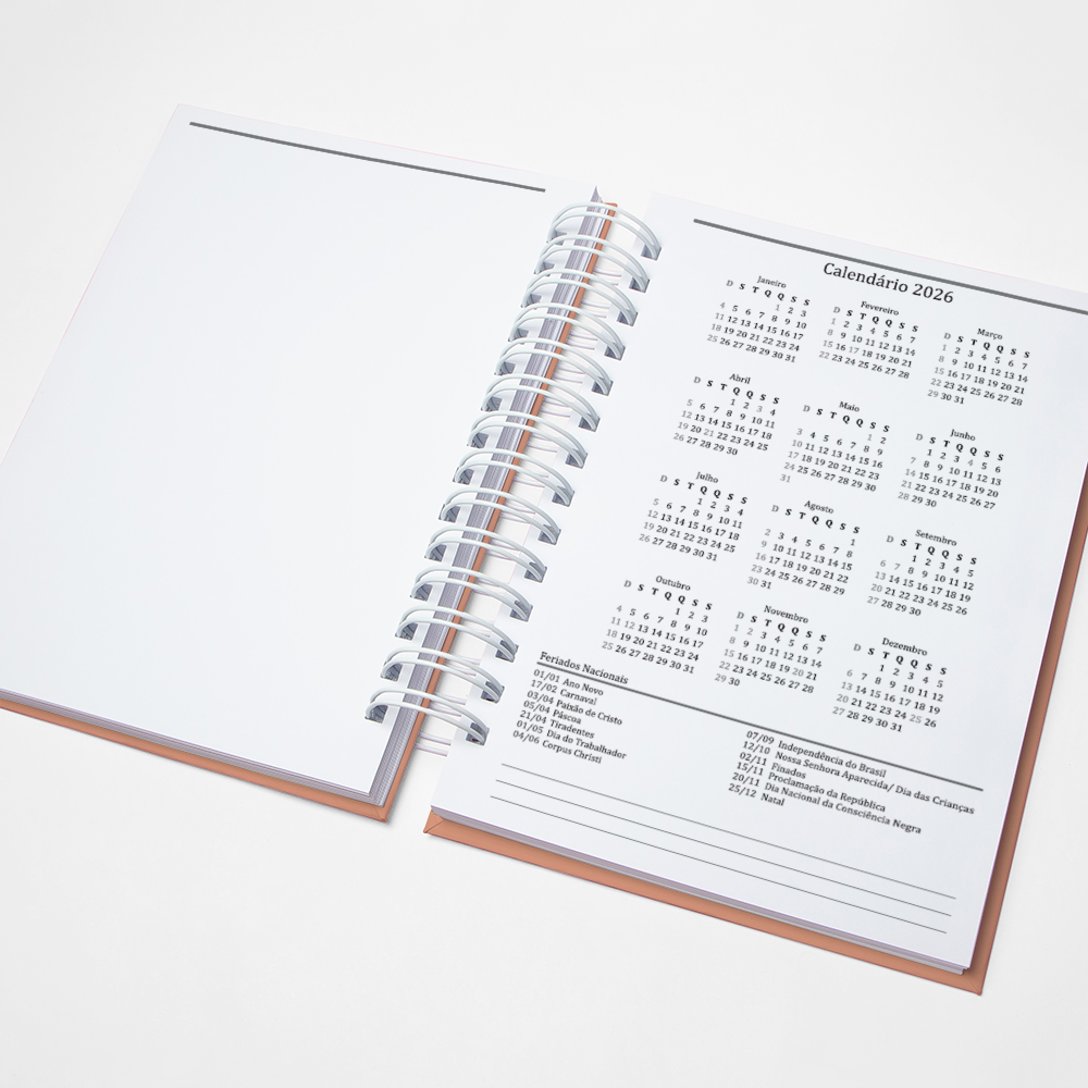 Para que sua Agenda fique ainda mais Perfeita, você pode escolher a Capa que preferir para colocarmos nela. Temos uma variedade incrível de opções (acesse no menu Opções de Capas) e escolha a que mais te encantar.