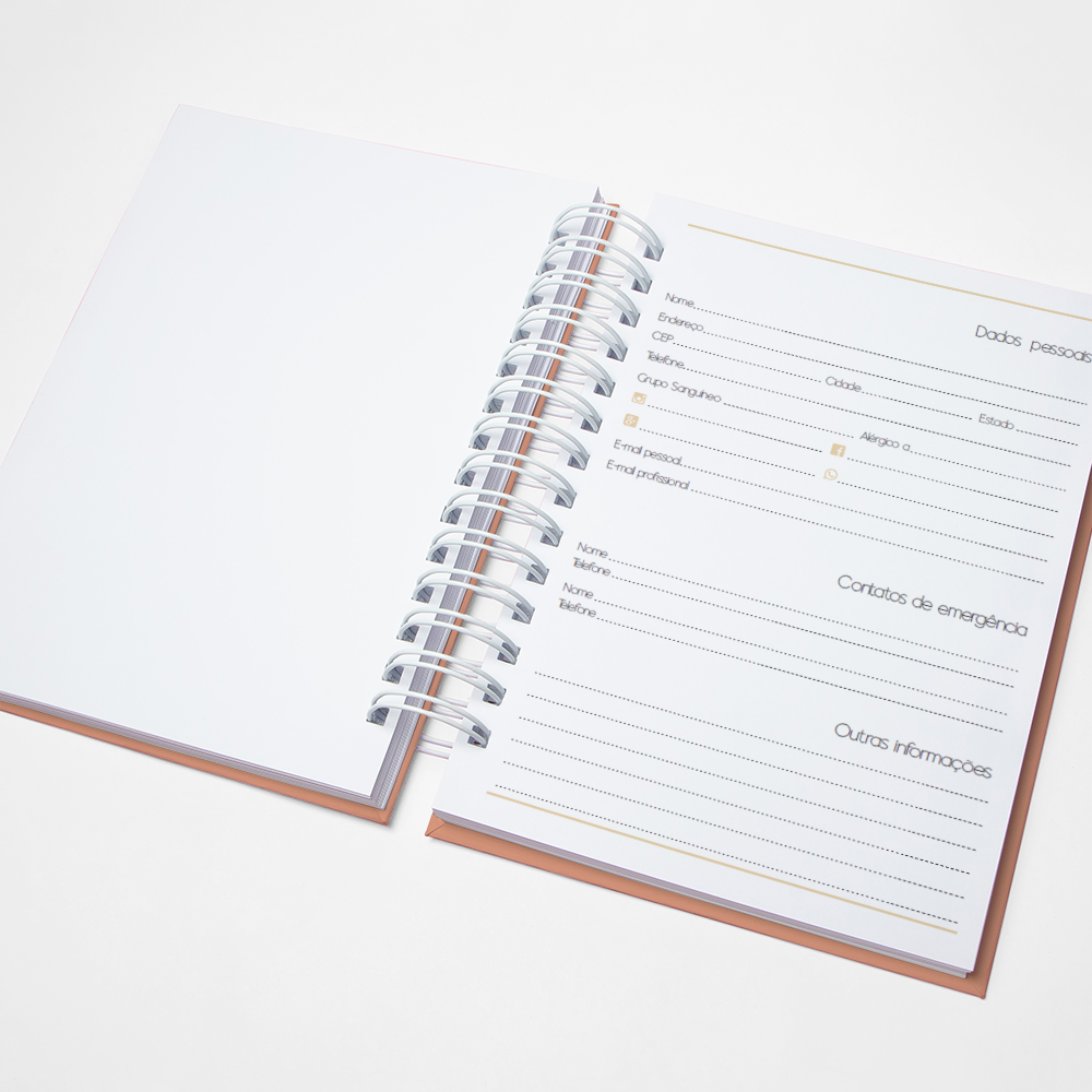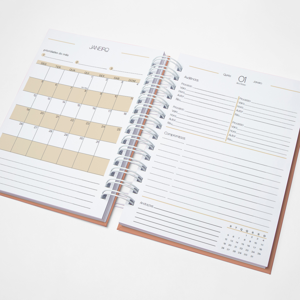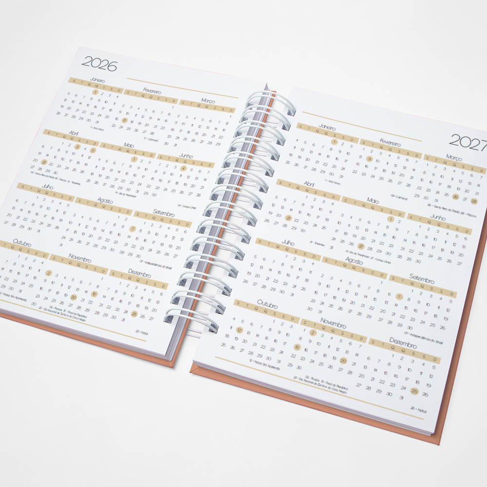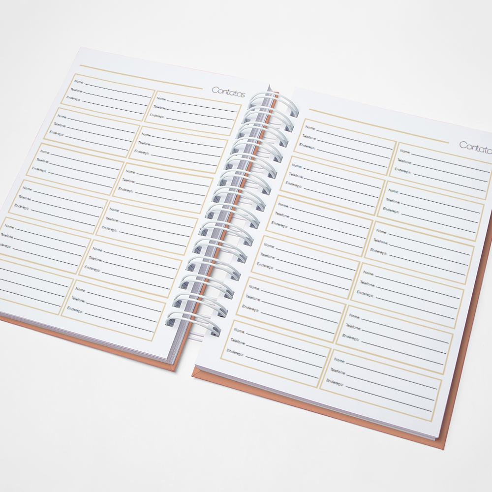 Para que sua Agenda fique ainda mais Perfeita, você pode escolher a Capa que preferir para colocarmos nela. Temos uma variedade incrível de opções (acesse no menu Opções de Capas) e escolha a que mais te encantar.