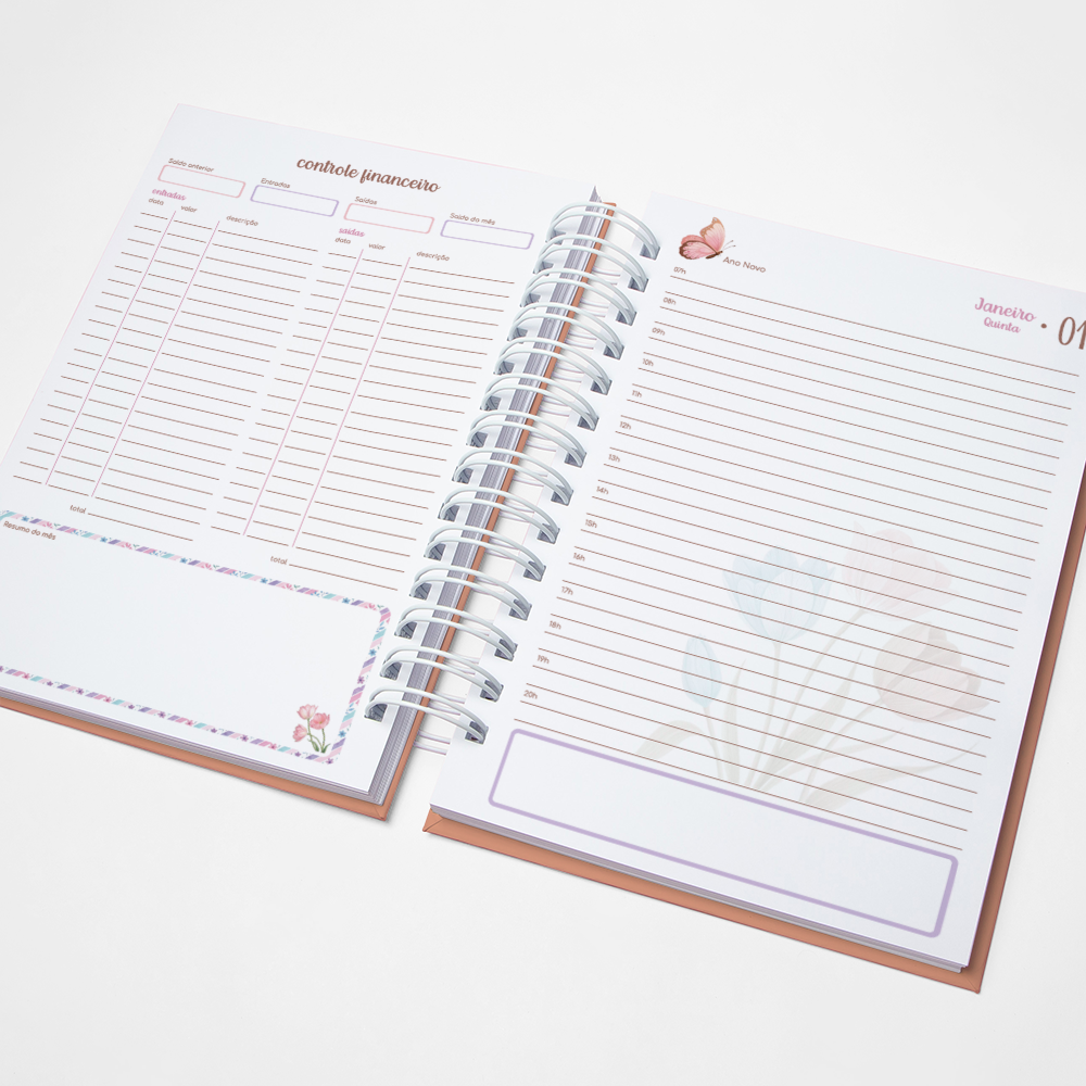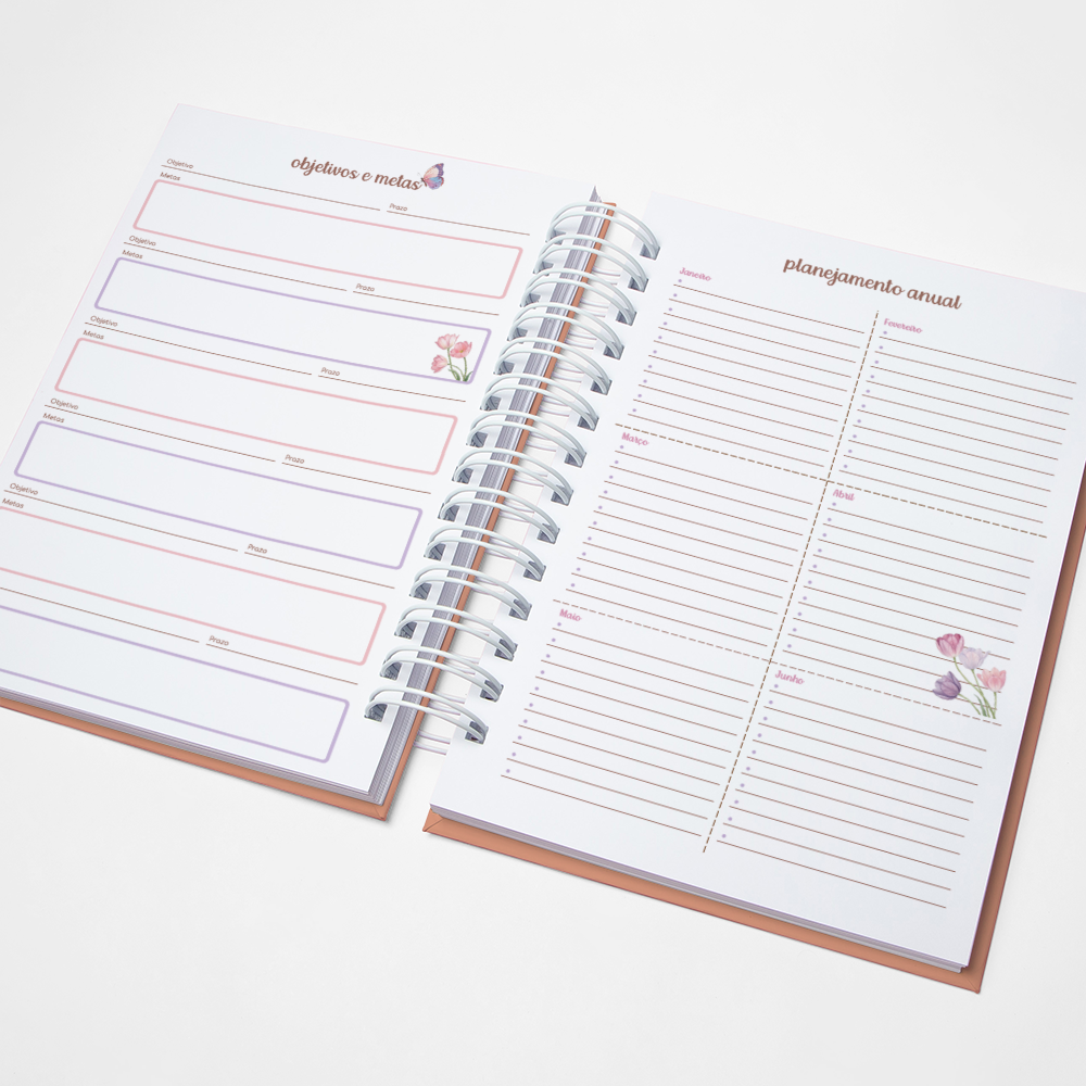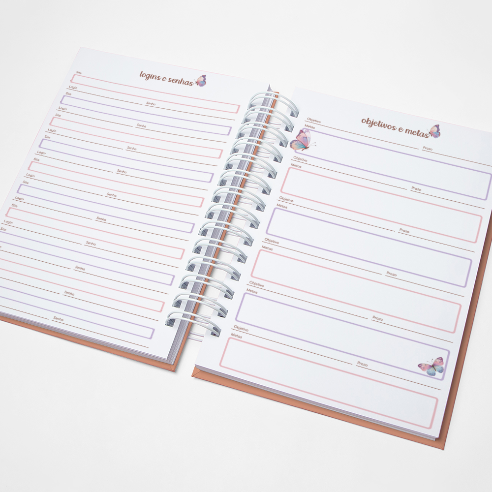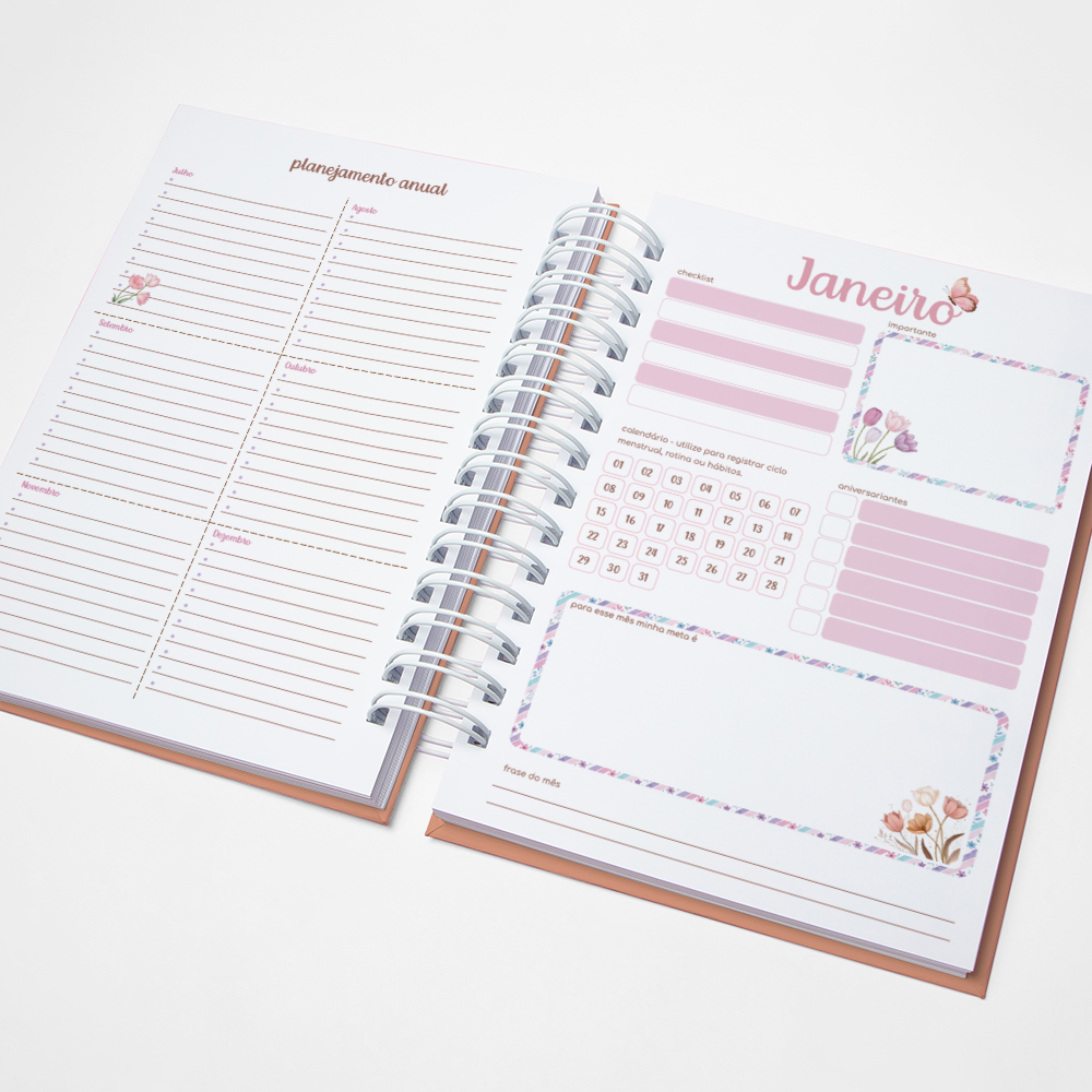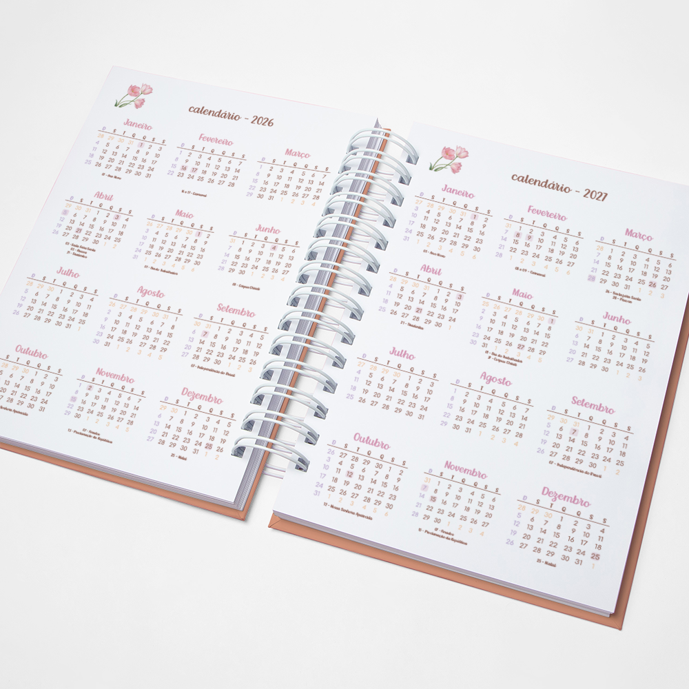 Para que sua Agenda fique ainda mais Perfeita, você pode escolher a Capa que preferir para colocarmos nela. Temos uma variedade incrível de opções (acesse no menu Opções de Capas) e escolha a que mais te encantar.