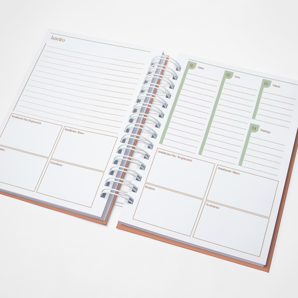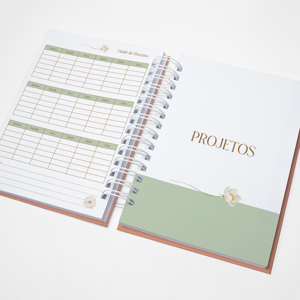 Para que seu Planner fique ainda mais Perfeito, você pode escolher a Capa que preferir para colocarmos nele. Temos uma variedade incrível de opções (acesse no menu Opções de Capas) e escolha a que mais te encantar.