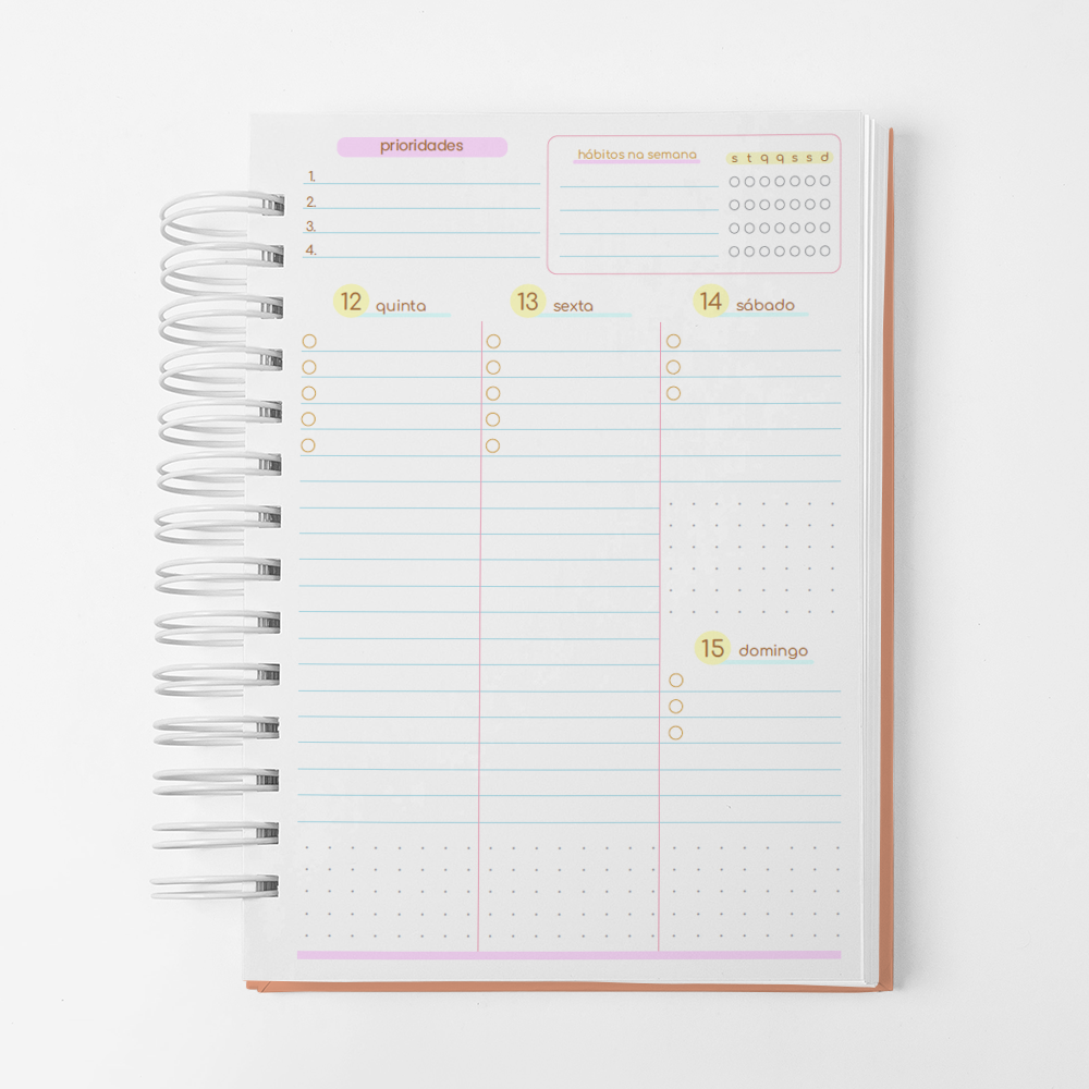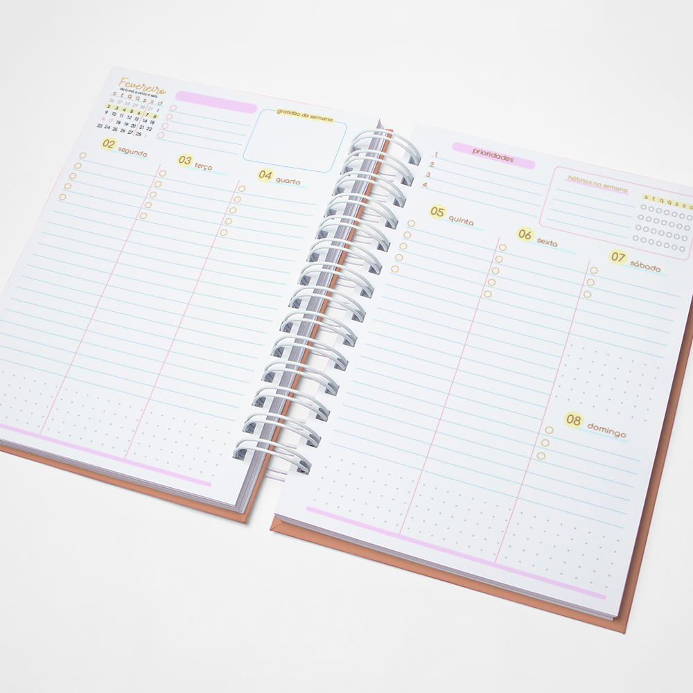 Para que seu Planner fique ainda mais Perfeito, você pode escolher a Capa que preferir para colocarmos nele. Temos uma variedade incrível de opções (acesse no menu Opções de Capas) e escolha a que mais te encantar.