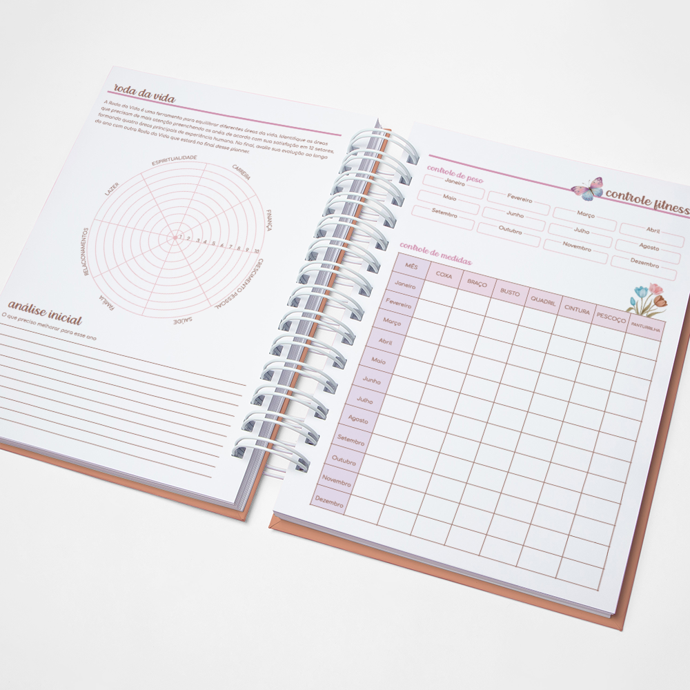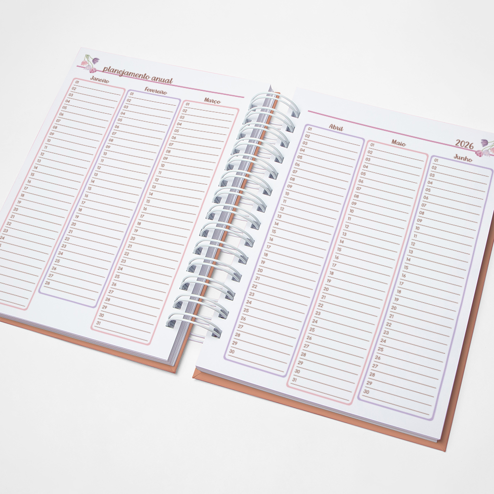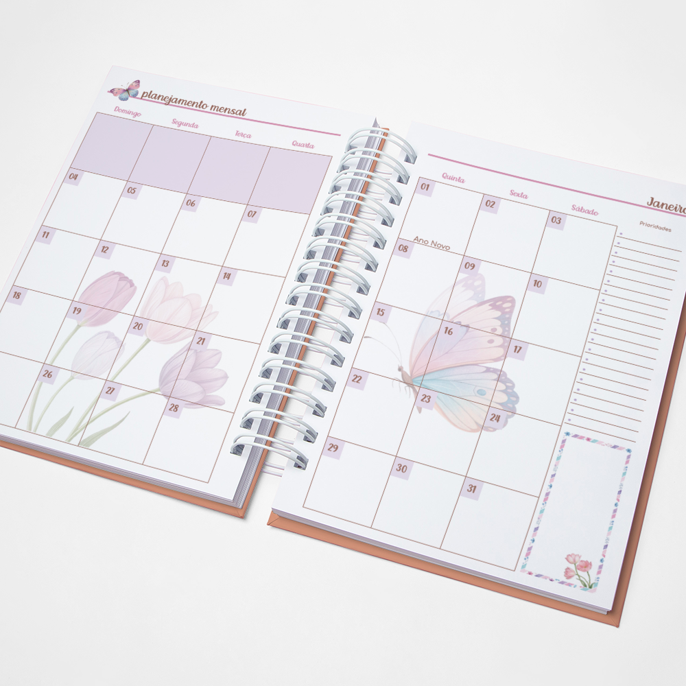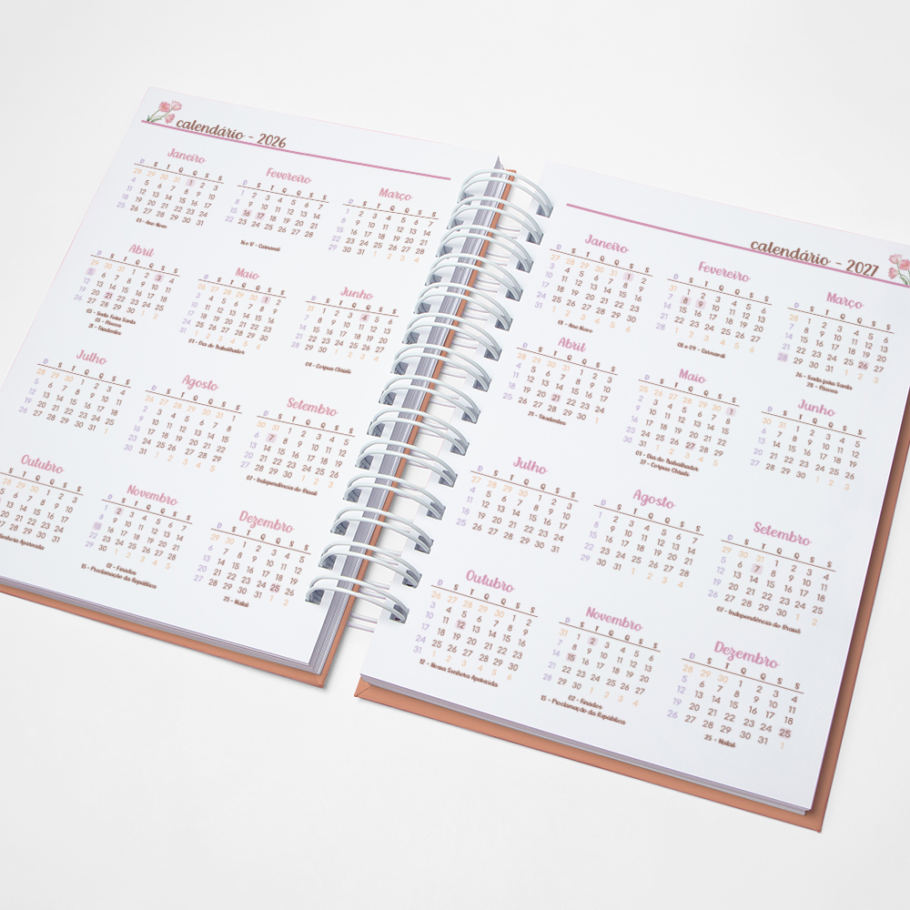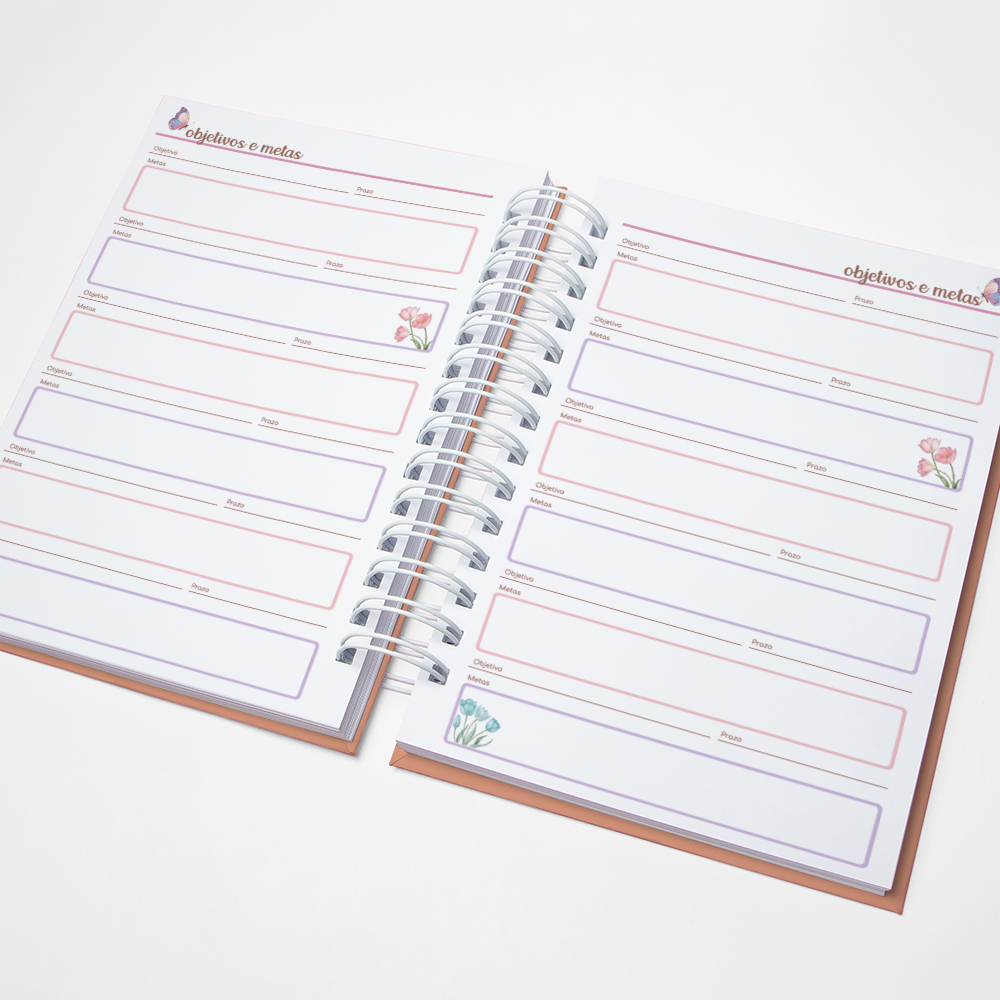 Para que seu Planner fique ainda mais Perfeito, você pode escolher a Capa que preferir para colocarmos nele. Temos uma variedade incrível de opções (acesse no menu Opções de Capas) e escolha a que mais te encantar.