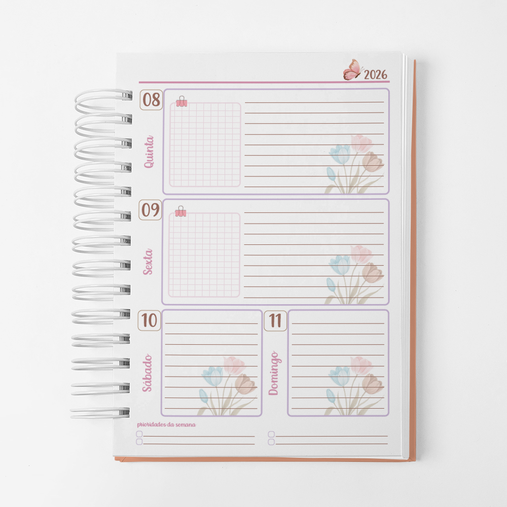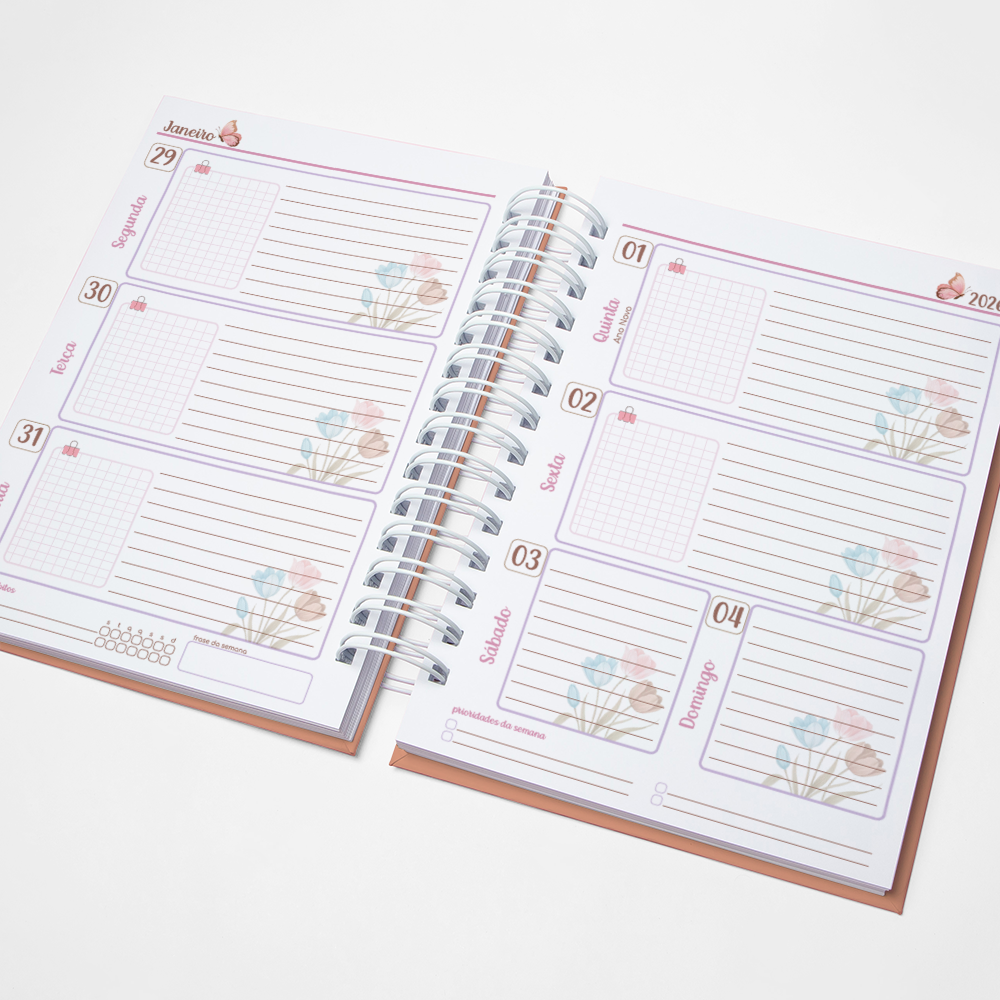 Para que seu Planner fique ainda mais Perfeito, você pode escolher a Capa que preferir para colocarmos nele. Temos uma variedade incrível de opções (acesse no menu Opções de Capas) e escolha a que mais te encantar.