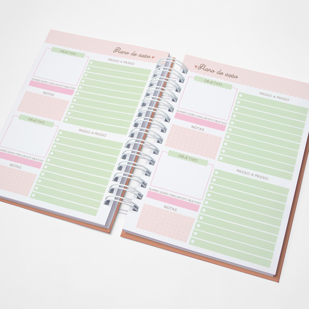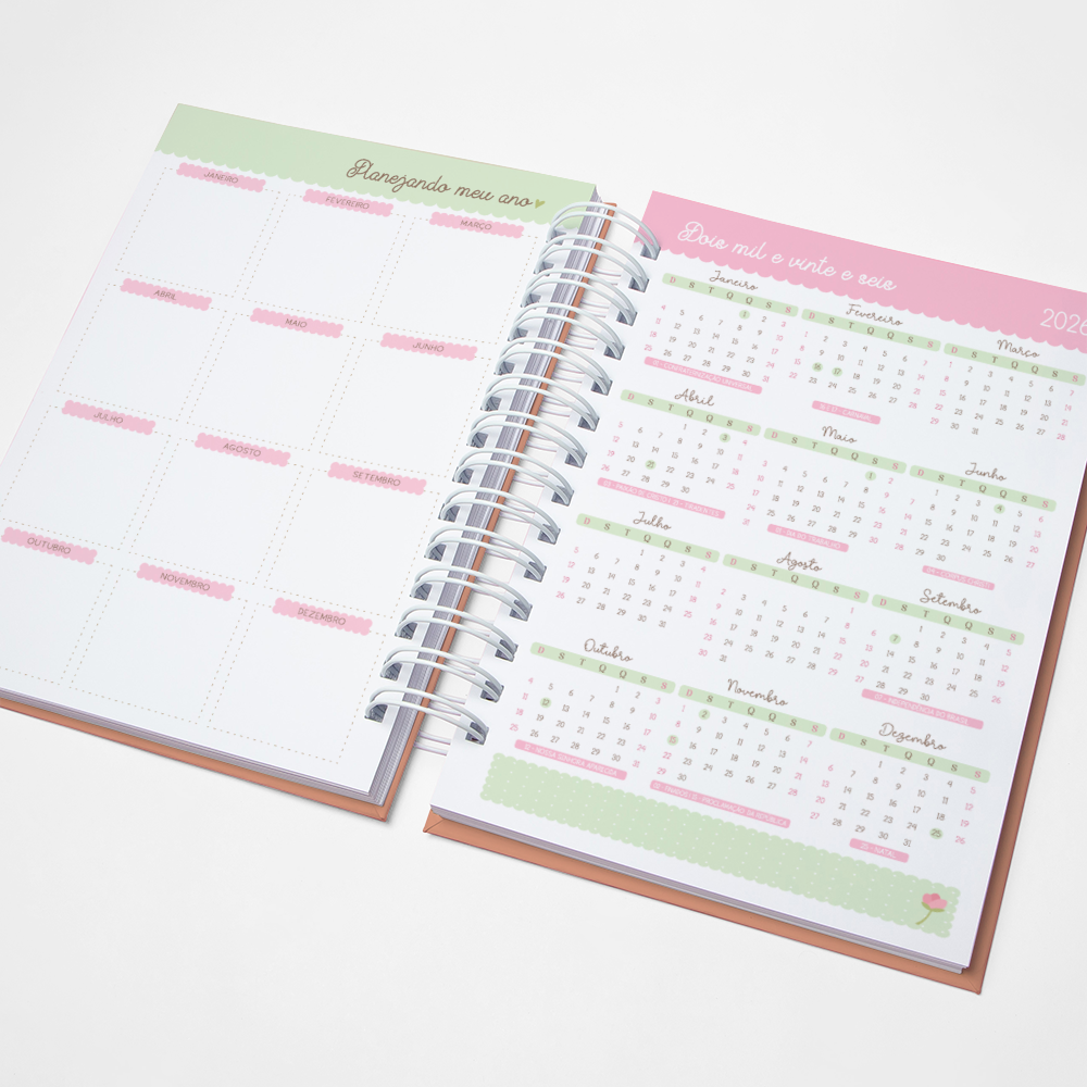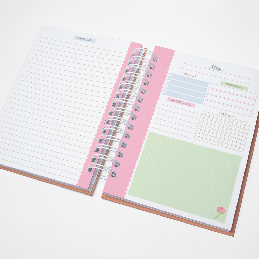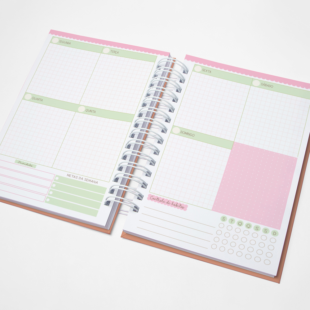 Para que seu Planner fique ainda mais Perfeito, você pode escolher a Capa que preferir para colocarmos nele. Temos uma variedade incrível de opções (acesse no menu Opções de Capas) e escolha a que mais te encantar.