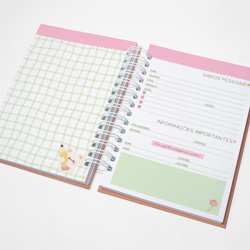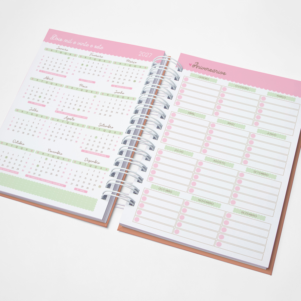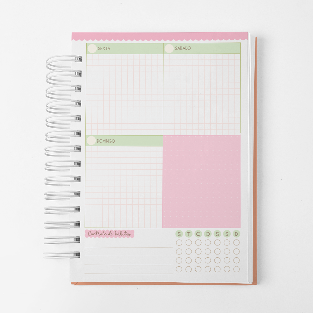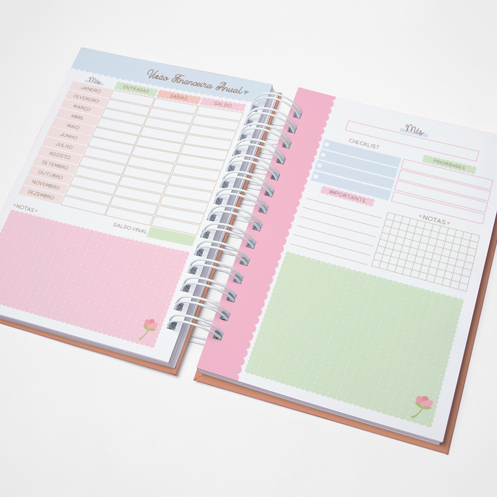 Para que seu Planner fique ainda mais Perfeito, você pode escolher a Capa que preferir para colocarmos nele. Temos uma variedade incrível de opções (acesse no menu Opções de Capas) e escolha a que mais te encantar.