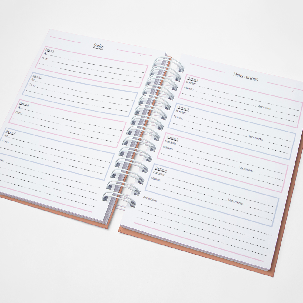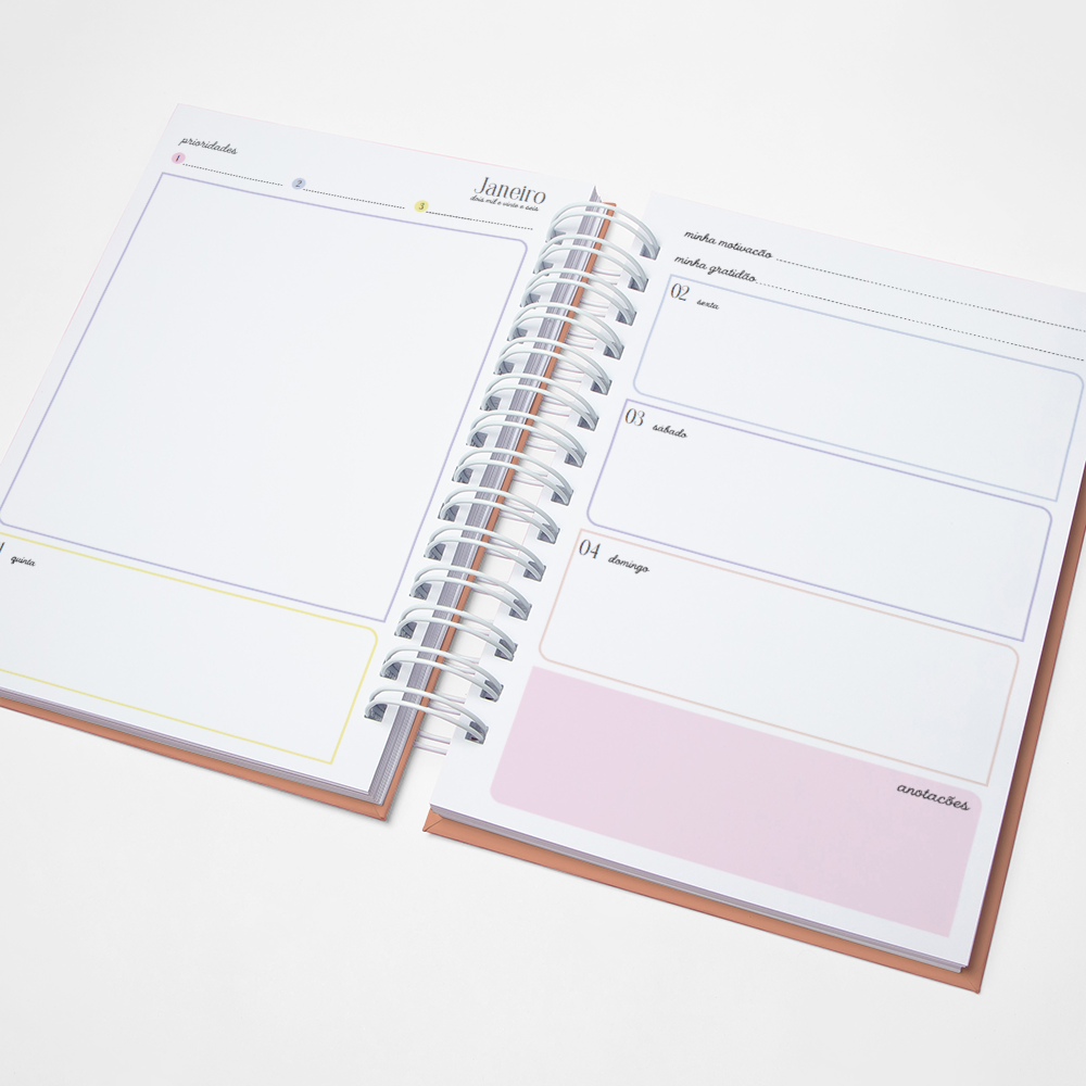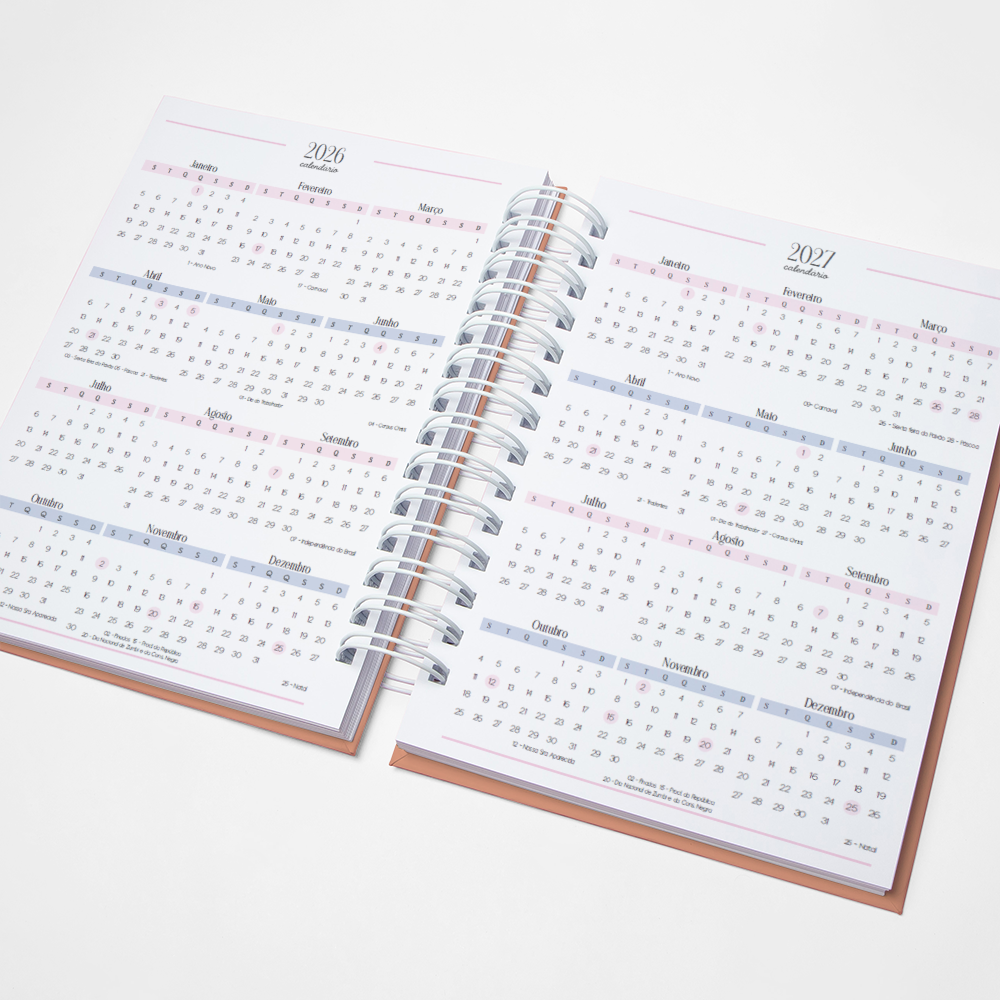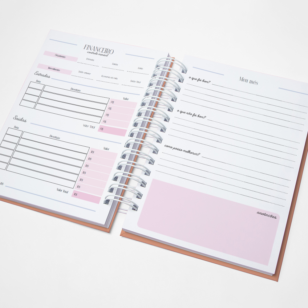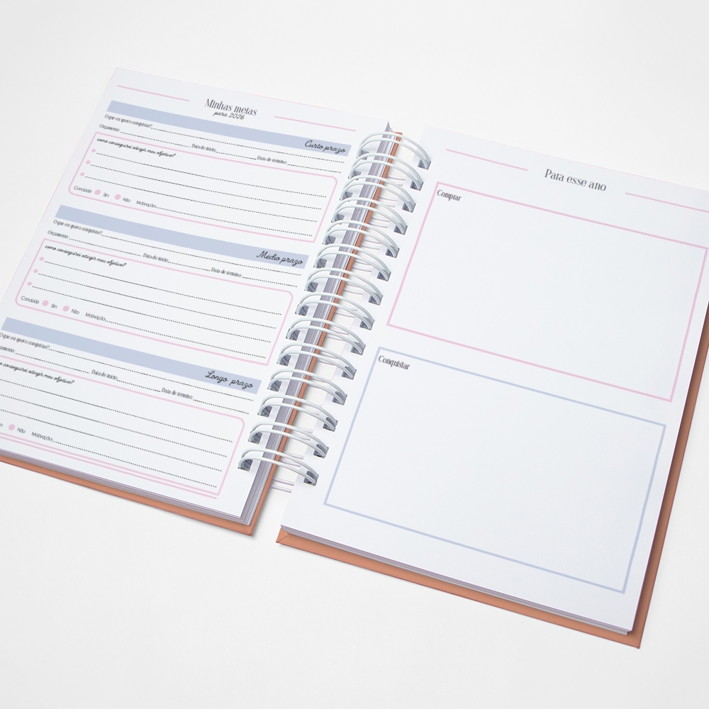Para que seu Planner fique ainda mais Perfeito, você pode escolher a Capa que preferir para colocarmos nele. Temos uma variedade incrível de opções (acesse no menu Opções de Capas) e escolha a que mais te encantar.