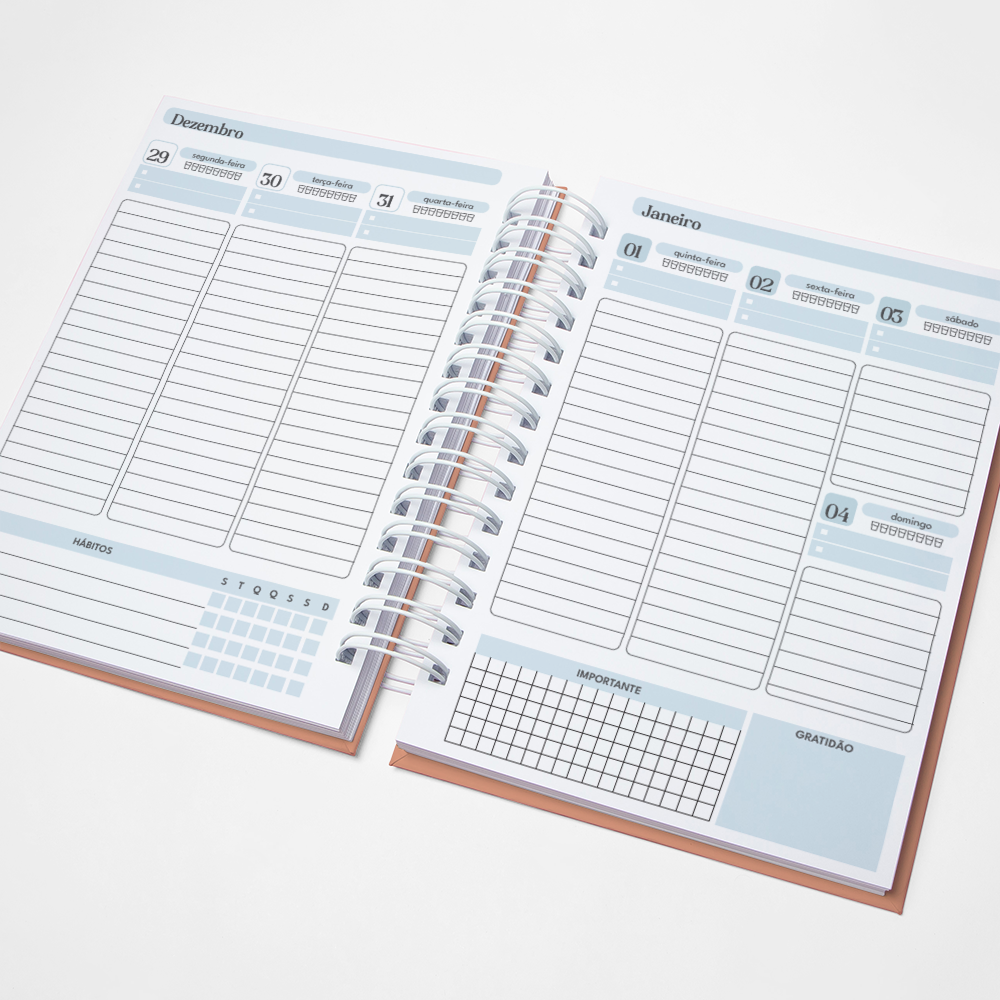 Para que seu Planner fique ainda mais Perfeito, você pode escolher a Capa que preferir para colocarmos nele. Temos uma variedade incrível de opções (acesse no menu Opções de Capas) e escolha a que mais te encantar.