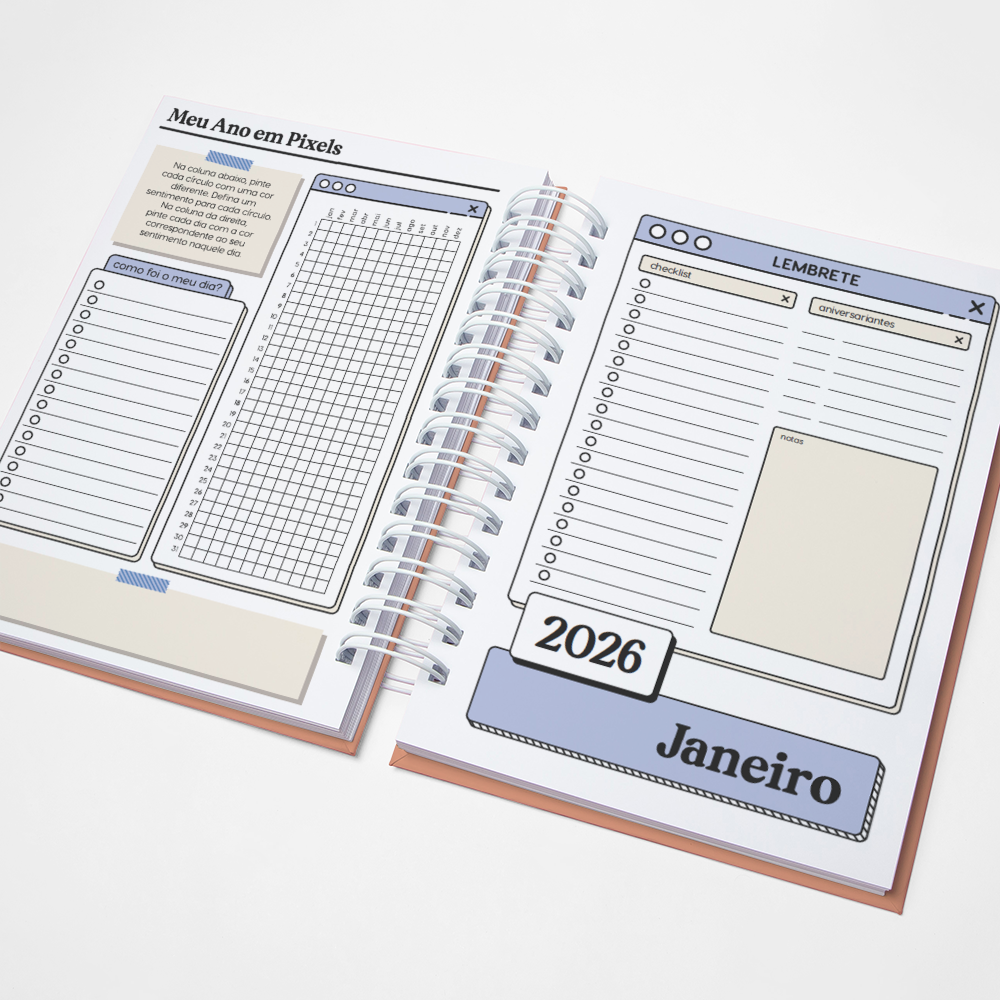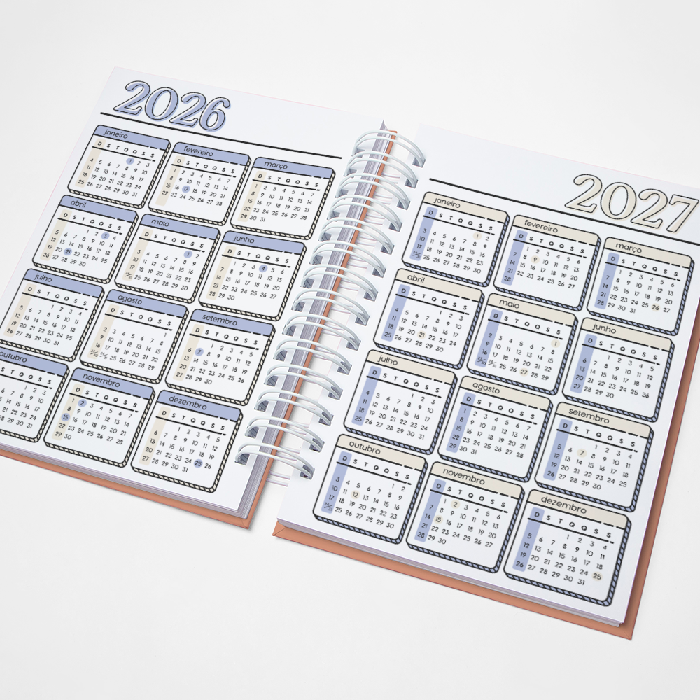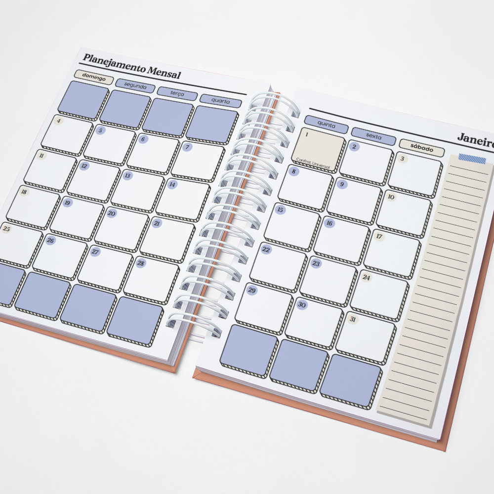 Para que seu Planner fique ainda mais Perfeito, você pode escolher a Capa que preferir para colocarmos nele. Temos uma variedade incrível de opções (acesse no menu Opções de Capas) e escolha a que mais te encantar.