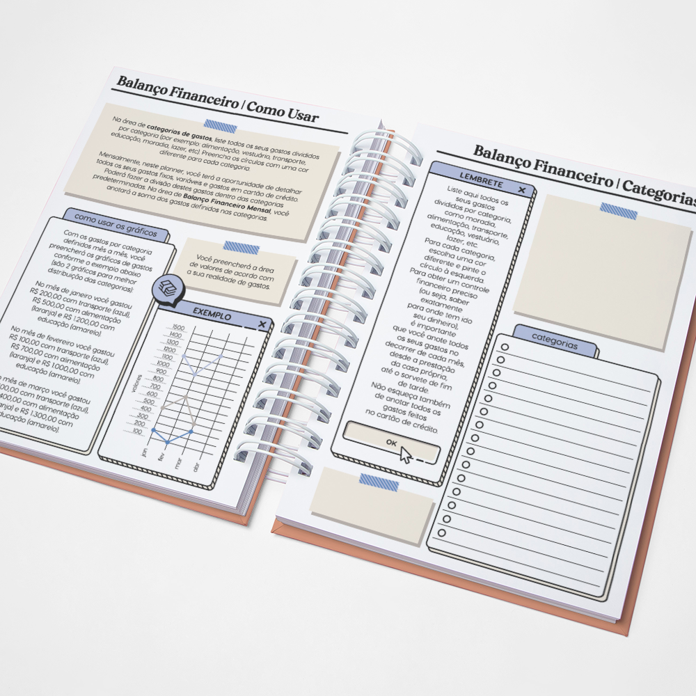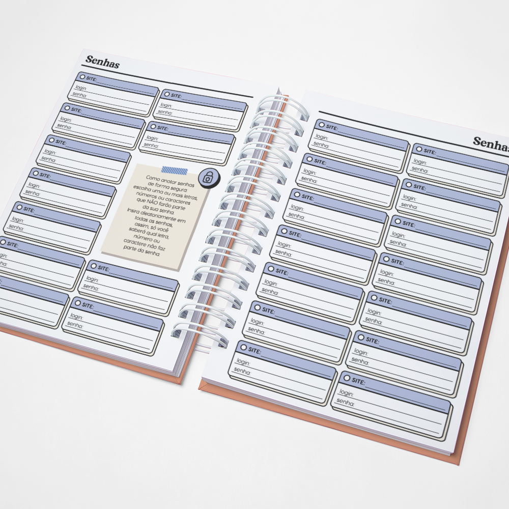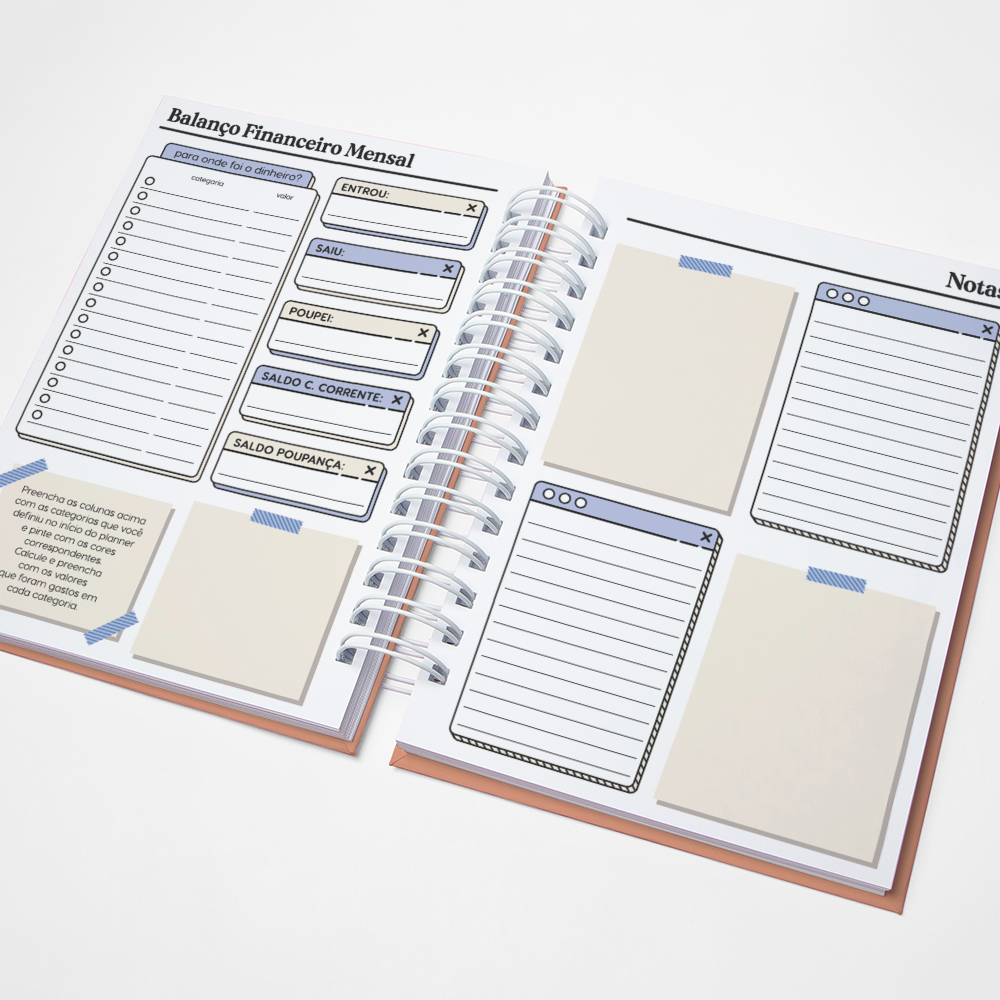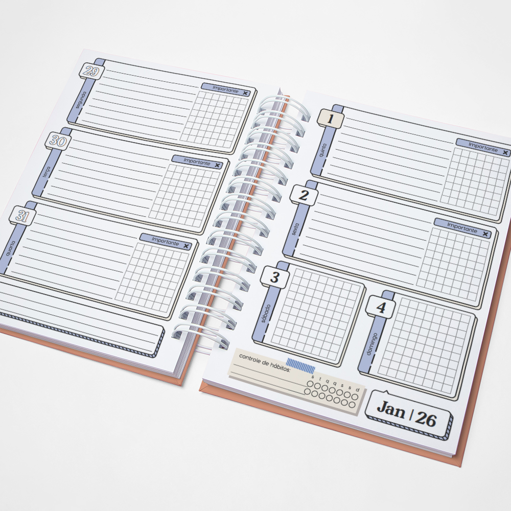 Para que seu Planner fique ainda mais Perfeito, você pode escolher a Capa que preferir para colocarmos nele. Temos uma variedade incrível de opções (acesse no menu Opções de Capas) e escolha a que mais te encantar.
